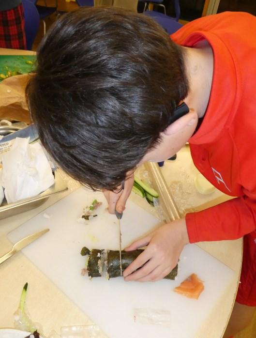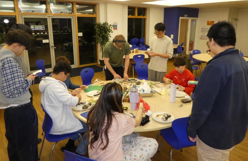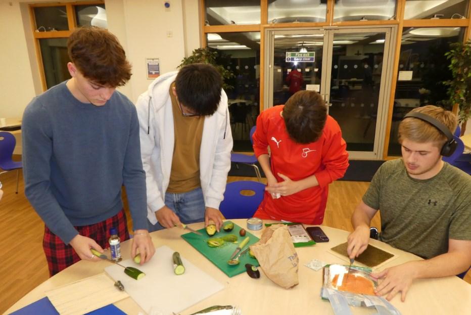 Armed with a large and varied selection of ingredients boarders settled down to an evening of sushi making. Some went for extremely large, and somewhat unstable, rolls whilst the old hands made more compact and traditional sized sushi. All their efforts were consumed with gusto though one or two were surprised by the amount of wasabi paste that had been used to “spice things up a bit.”