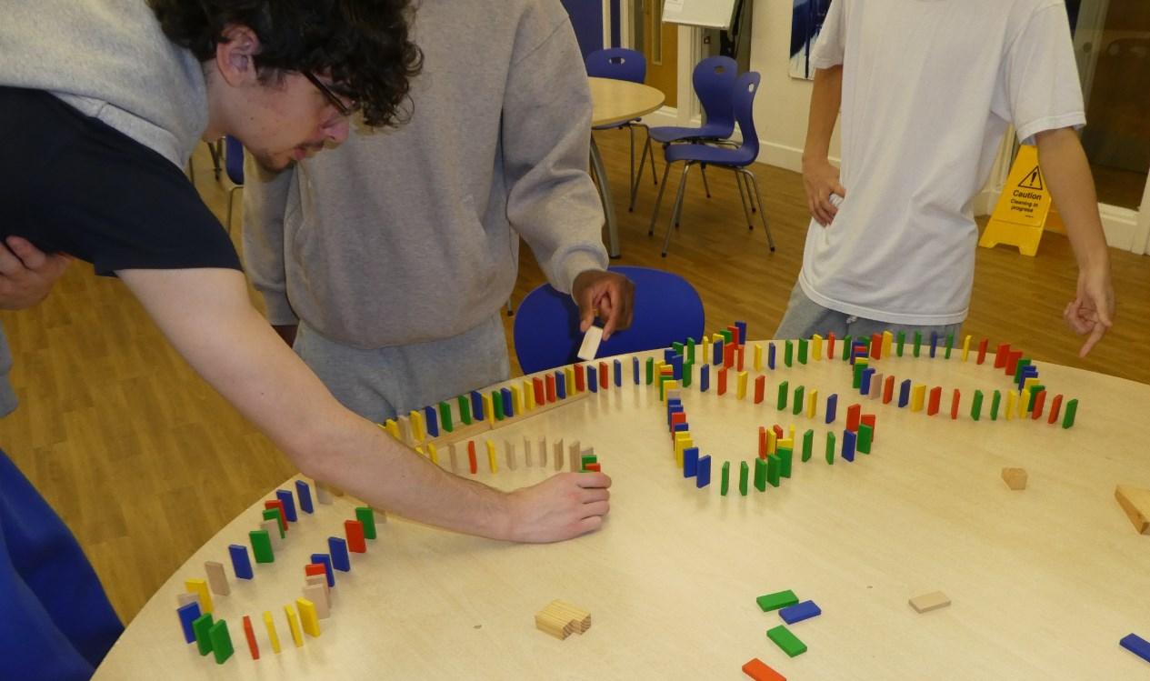 After a few mishaps boarding students managed a very respectable domino run… though it was started by accident.