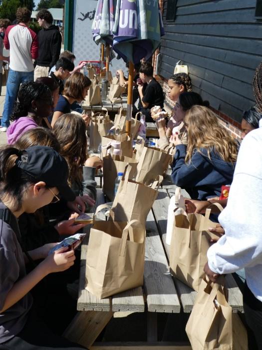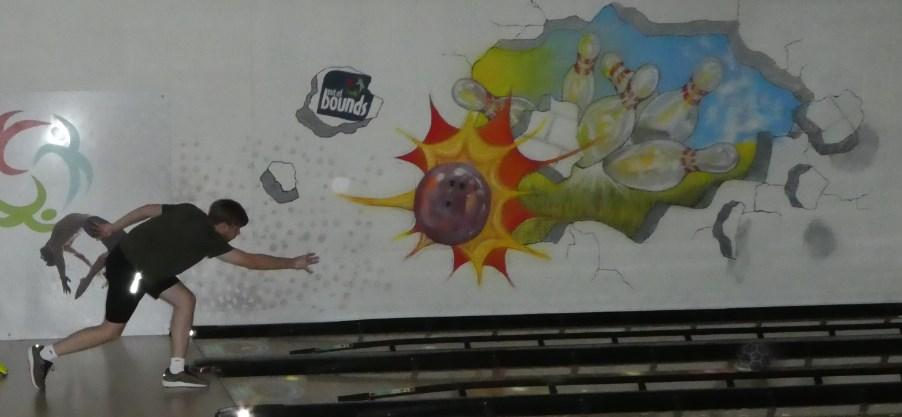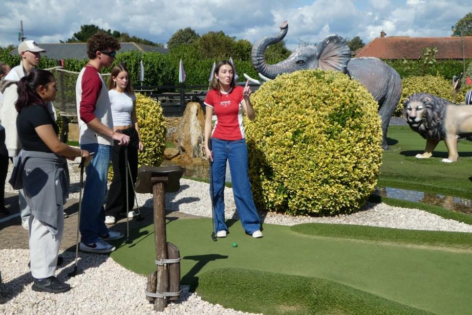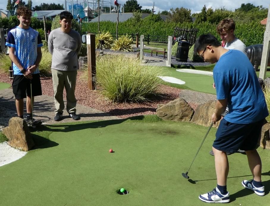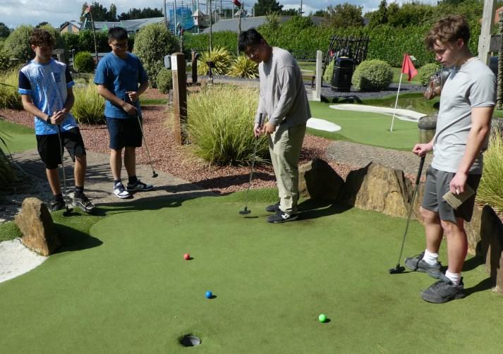Students took the opportunity to consume their packed lunches as we waited for our sessions to start. We were divided into two groups for climbing and crazy golf but were together for bowling and nets.