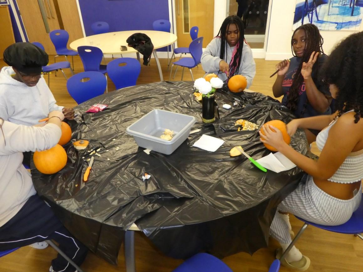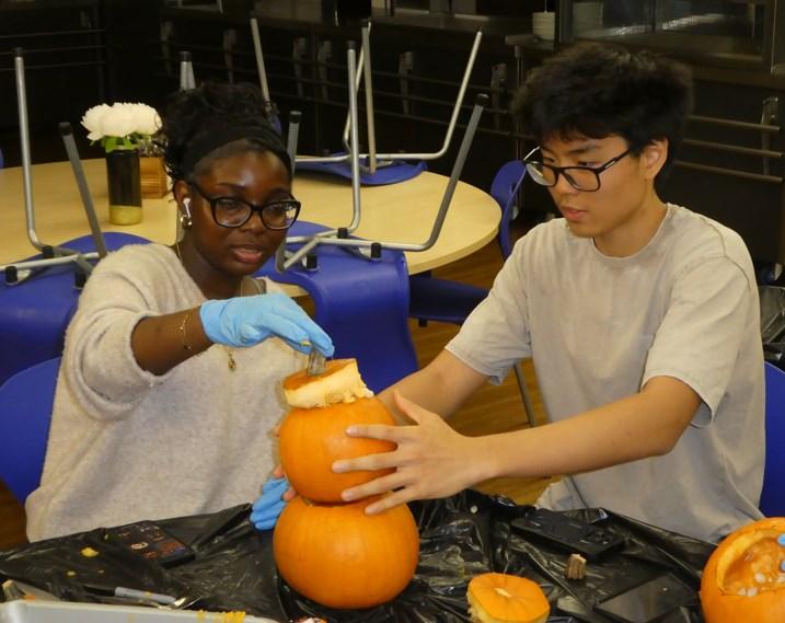 Boarders gathered on a Friday evening for the messy and slimy task of pumpkin carving. Designs were drawn with Sharpie pens and then the cutting and scooping began in earnest. There were some excellent creations but staff chose our first ever twin level “Halloween Snowman” as the overall winner. Well doneAnna and Theo who won a golden ticket each for their efforts.