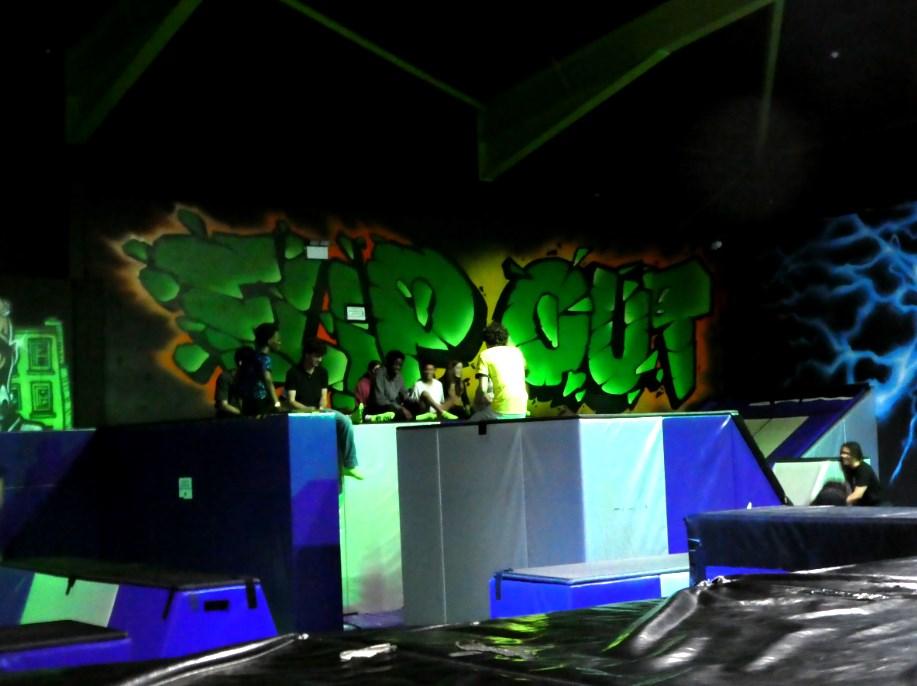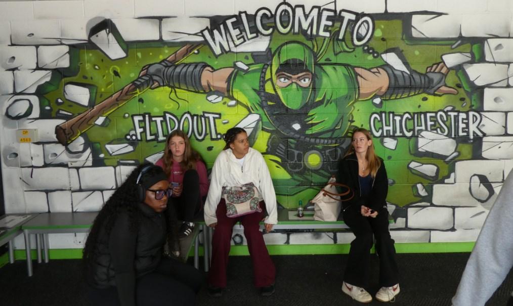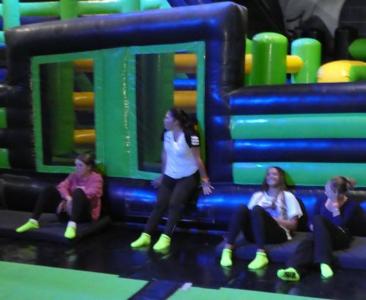Boarders took a trip to “Flip Out” trampoline park in Chichester. They were surprised when their fist obstacle to overcome was getting in! Due to the heavy rain the car park was flooded and so they had to crab-walk along a curb using the steel fence for support.