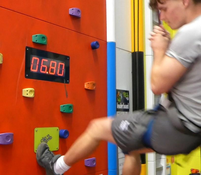 Many took on the speed climbing challenges andAlden was pleased with his score until Phoebe D clocked an 8.56 second run. In response to thisAlden threw himself at the climb leaping the last part to hit the button for an absolutely amazing 6.8 second ascent. Very impressive!