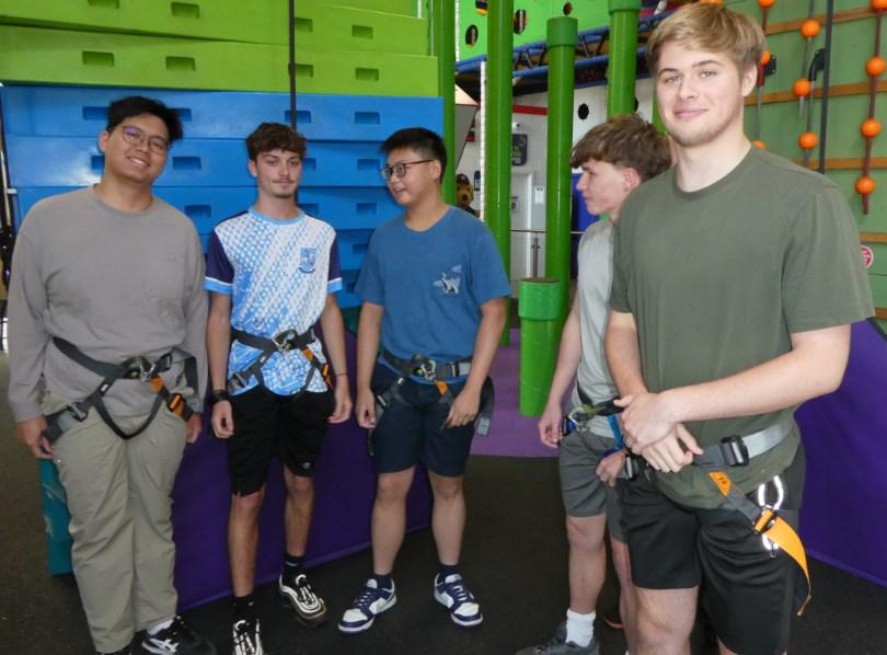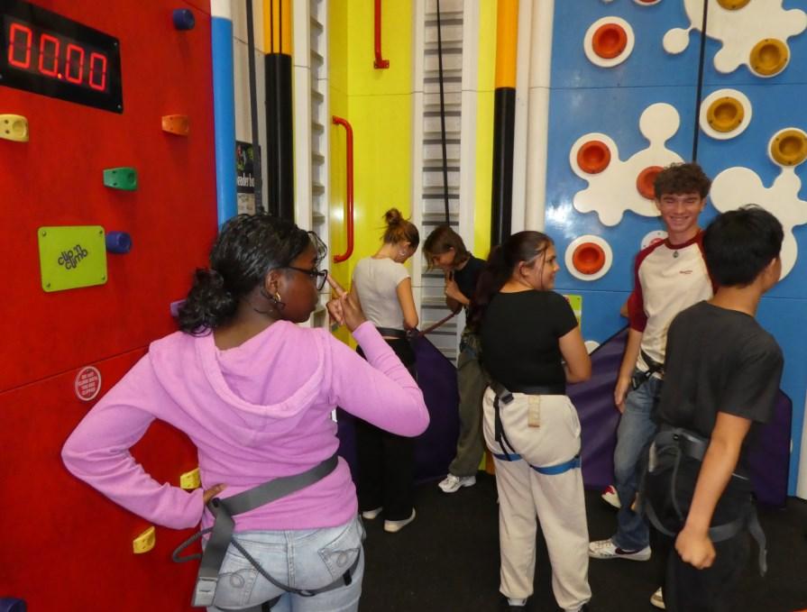 With the weather looking ominous it was decided that a hike in the rain was not our best choice and Ms Oliver organised a group outing to the Out of Bounds centre. We were booked in for four activities. Indoor climbing, tenpin bowling, crazy golf and high nets.