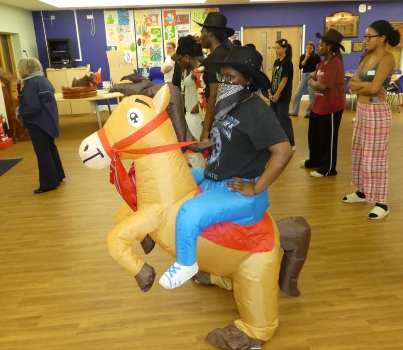 Our Head Girl, Tosan, went the whole way and performed in one of the inflatable horse and cowboy suits including bandanna.