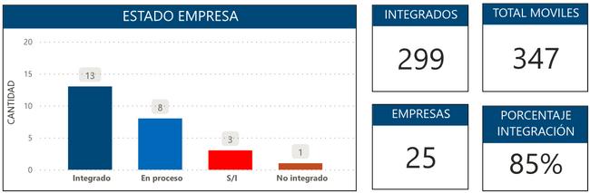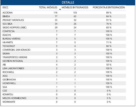 Estado de Integración Empresa N° Total de Operadores/ Conductores N° Total Evaluados 4er Trimestre N° Reprobados N° En proceso N° Reevaluaciones Acciona Sin información Comtecsa 26 26 0 26 0 EIMISA Sin información Promet 109 109 3 106 0 Rockwell 4 4 0 4 0 SGS SIGA Sin información Sigma 28 8 0 0 0 SKIC 55 30 4 25 0 Sodexo 10 10 0 10 0 Tecnofast 4 4 0 4 0 ESACHS SIN INFORMACION Gestión Integral SIN INFORMACION P R O Y E C T O R A J O I N C A