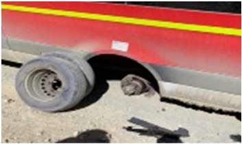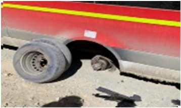 ConductorFurgónempresaHGTTOURLJSJ82,indica quealtrasladarapersonalaniveldeproducción,en sectorde10km/h,alllegaraccesonortesienteruido verificandoqueneumáticosposición3sehabían desprendidos