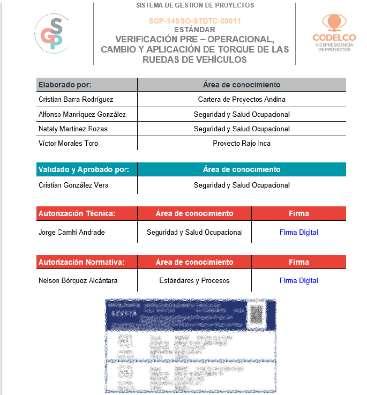 EstándarVerificaciónPreOperacional,CambioyAplicacióndetorquede lasruedasdevehículos.