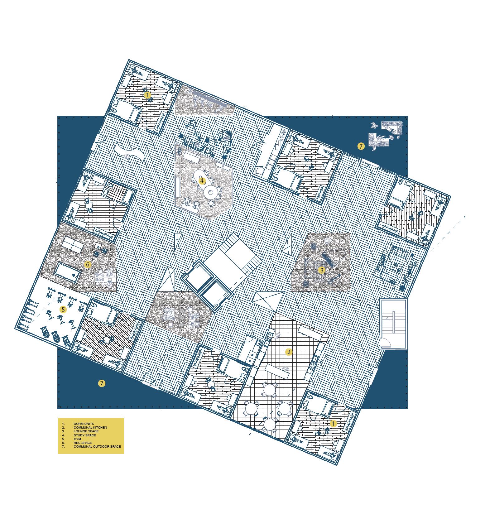 This project focuses on designing a collective residence for an underserved population at Ohio State University, building on the institution’s history of providing housing for underrepresented groups. However, the university still faces challenges in providing adequate housing for specific underserved populations, especially student parents, married students, and veterans.