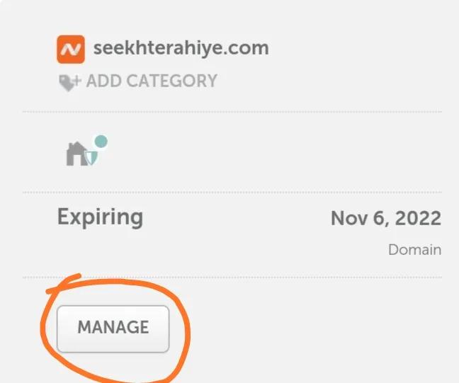 Clickthe“manage”buttontoknowmoreaboutyourdomainname.