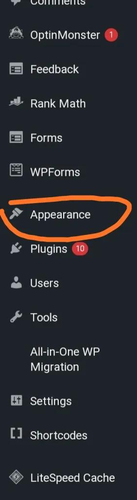 Step3– Logintoyourwebsite’sdashboardandgototheappearancesectionof yourdashboard.