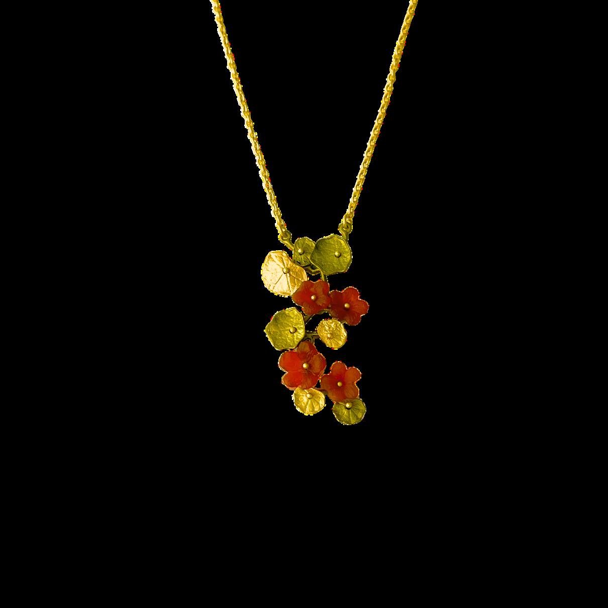 rld-renowned jewelry oduce this exclusive al Hanging Nasturtium ves and glass blooms, from the actual plant, ost wax casting.