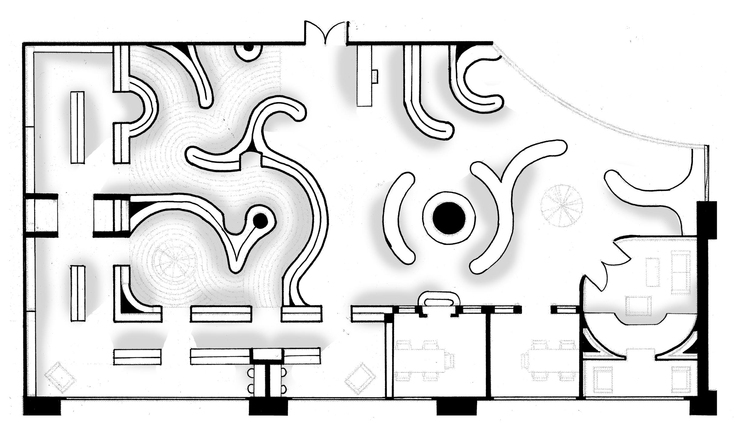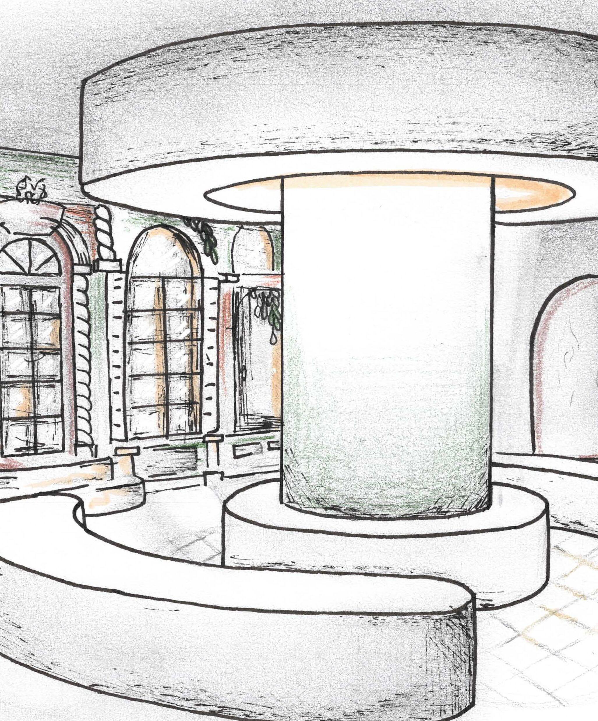 Project interiors were based on sections. Since we wanted to depict the erosive effect of the back side of the basin by excavating it, the direction from the section view is based on the archaeological component of stratigraphy.
