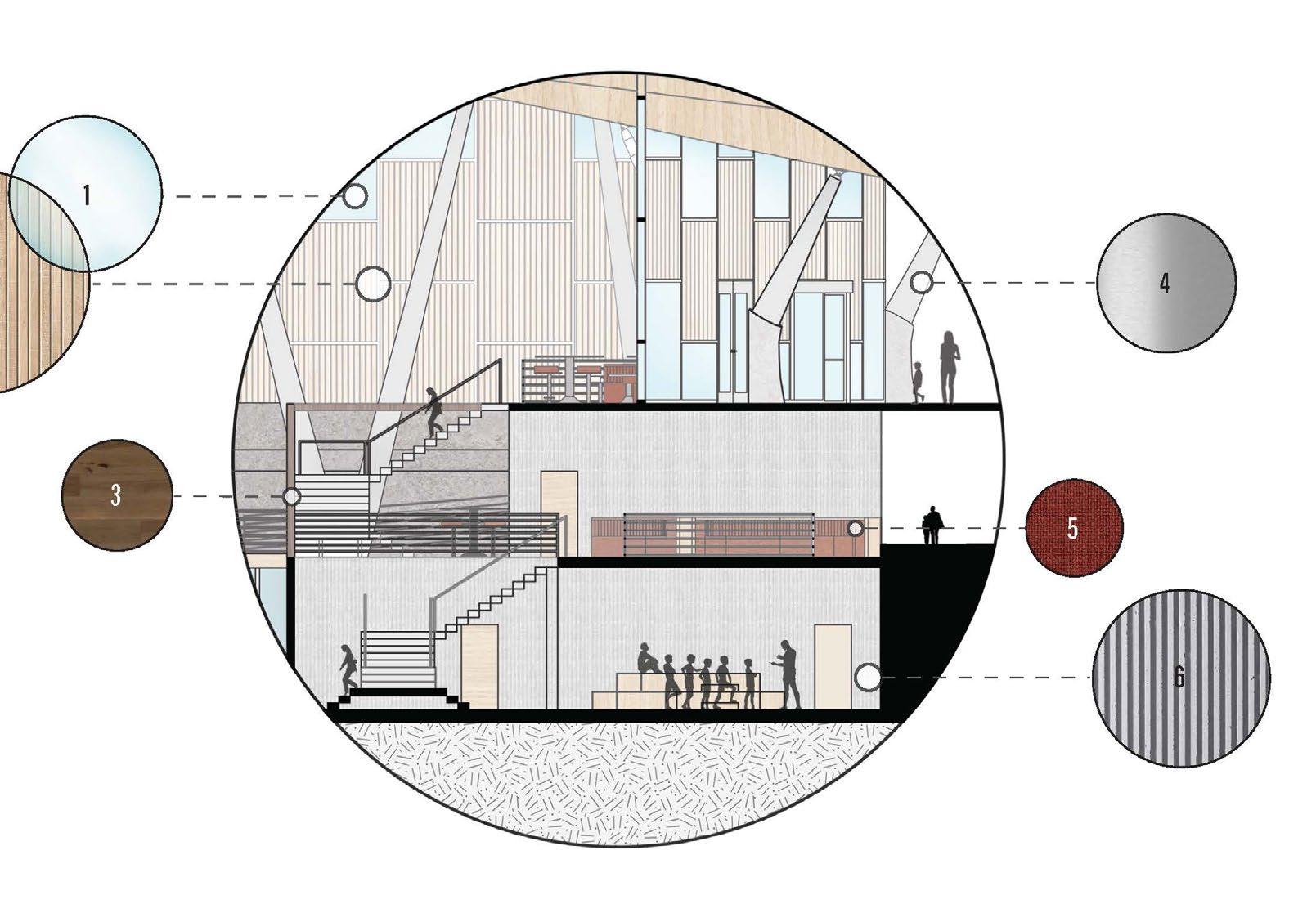 The ultimate objective is to create a transportation hub that promotes wellbeing, communication, productivity, and mindfulness. Additionally, utilizing amenities within the building that complement the surrounding context instead of repeating it.