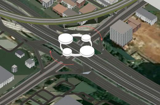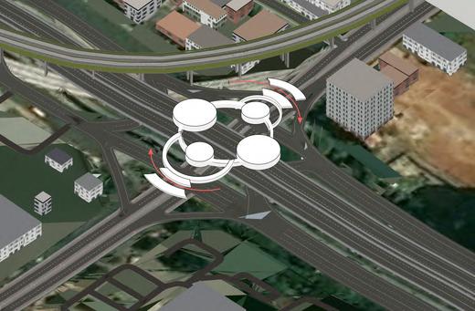Massesandroadsisconnectedwthacircular horizontalcirculatonnthemiddle