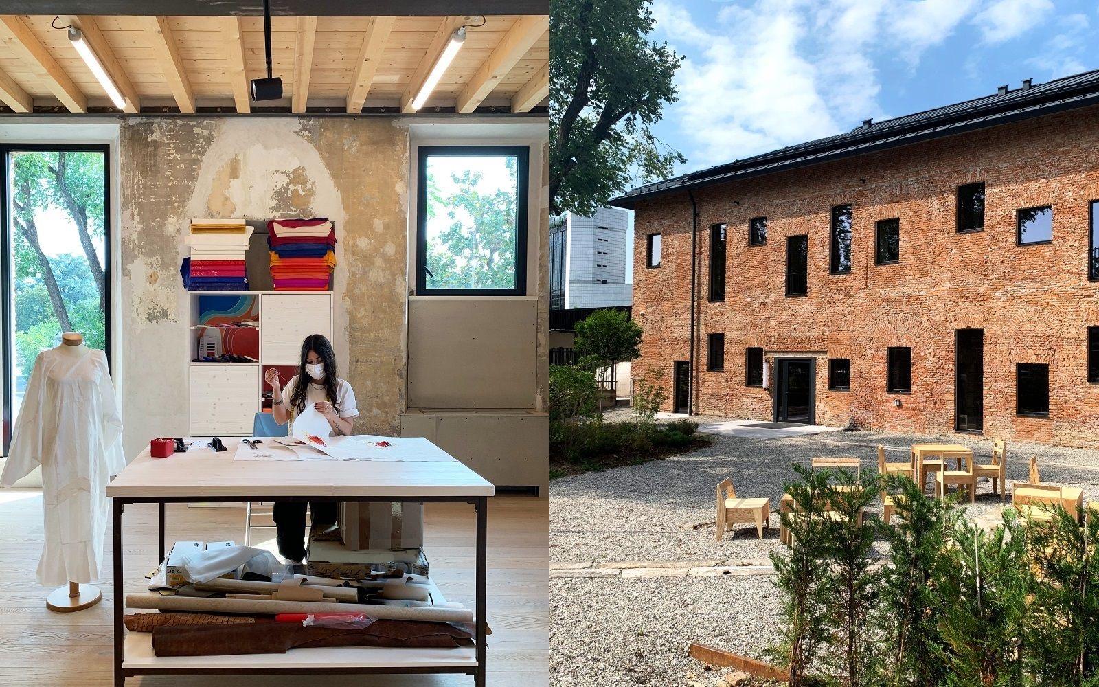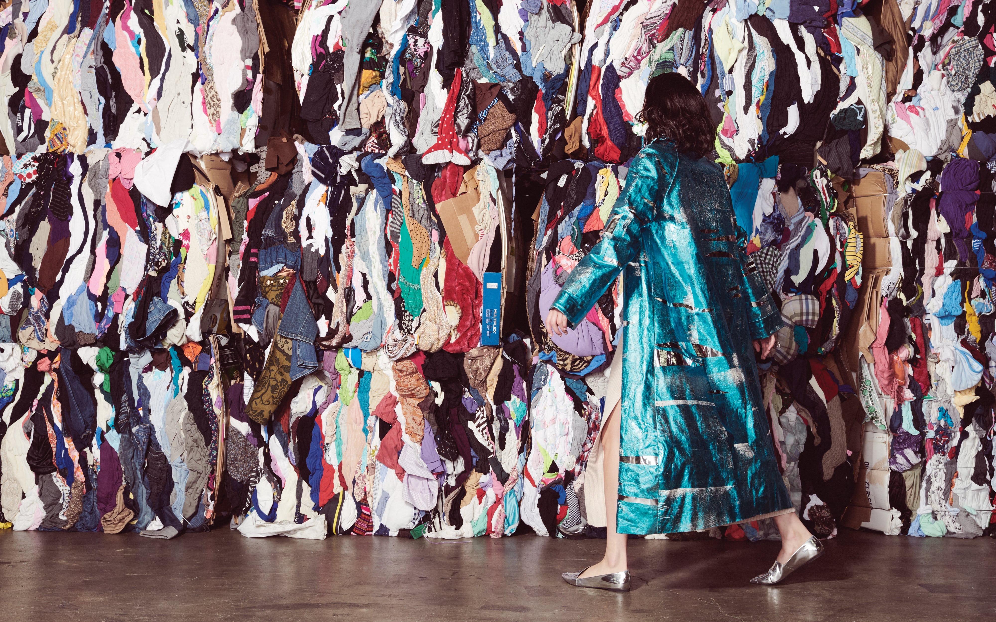 The latest Fall/Winter manufacturing process of the collection, taking the viewer into the offices and factories where it has been made: a story in images that winds its way through piles of discarded clothing, vintage scarves stitched together in new creations, linen obtained from home furnishings (doilies, tablecloths, sheets, pillowcases, etc.), threadbare T shirts disassembled and then reassembled according to new configurations, and the list could go on and on.