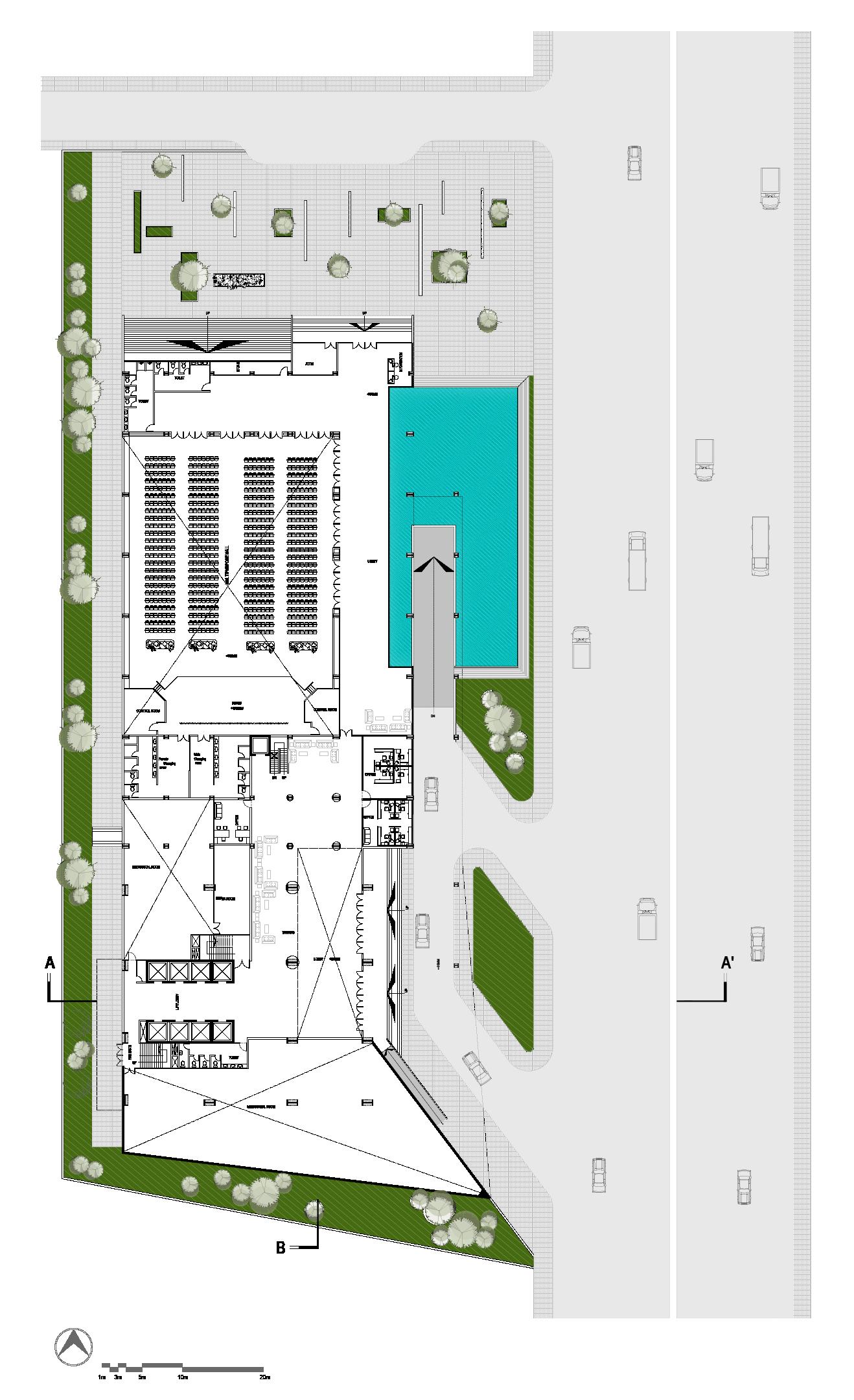 The ground is an open plaza accessible by all. This plaza may house any kind of public gathering.