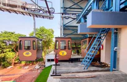 Thesoon-to-be-inauguratedropewaywillenticevisitorswithitsuniqueartisticvision thatincorporateslocalflora&fauna.TheNandankananropewayhasbeendeveloped aroundthe‘jungletheme.’ThisRopewaywillhelpinboostingtourismasthisropeway starts within Nandankanan Zoological Park and ends at Botanical Garden. The total length of the ropeway is 628 m, and its carrying capacity is 400 persons per hour The systemconsistsoftwotowersand12cabins.Eachcabinhasacapacityofsixpersons. Even the cabins are given a wooden finish to fit into nature and its beauty The cabins have some openable windows and air vents to help with air circulation. The wooden look cabins have a luxurious rose gold edging to give a hint of luxury while staying firmly in touch with its natural surroundings. The cabins are adorned with colourful tribal art-inspired digital art, representing different animals that inhabit NandankananPark.