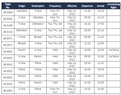 IndiGo, India’s leading carrier, has announced new flights from North Goa to Patna, Bhopal, Vadodara, and Dehradun, effective May 22, 2023. The airline will connect North Goa to Ranchi via Patna, effective May 24, 2023. These flights are aimed at strengthening domestic connectivity and offering customers with increased flight options,toIndia’smostpopulartouristdestination,Goa.Theadditionoftheseroutes willtakethetallyoftotal22flightsbeingoperatedfromNorthGoa.