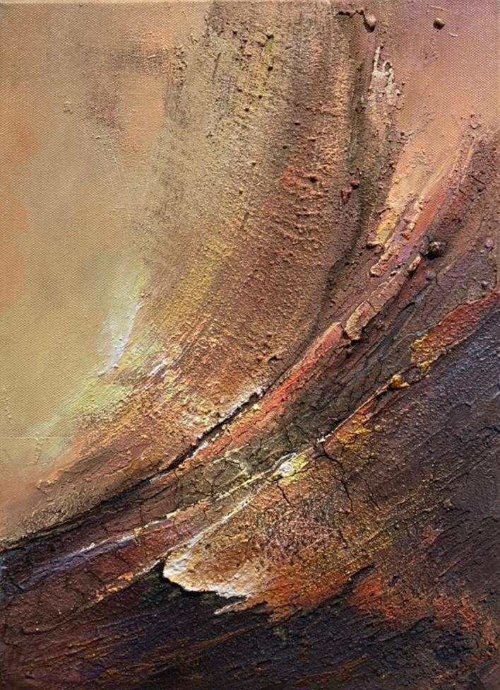 CHIANG 經歷許多以後 發覺自己的生命歷程相對幸運很多 以言述的感受 畫與我彼此相長 YI-HSUAN 江怡萱,臺中人,2020始於滿哥畫室學畫 CHIANG HSUAN 經歷許多以後,快樂不再容易,笑容不再總是出現,但比起多數人,我 發覺自己的生命歷程相對幸運很多,無時無刻不被溫暖簇擁著的我,難 以言述的感受,就由畫來說。 畫與我彼此相長,當日常成為習慣,我知道,火花不會「火花去」。 邃 煬 彼岸 瑰靈 浦 曦 冀 熠意 Contents /目次 不會有人一直陪你走, 但會有人陪你磨 光述說的溫暖,串起彼此的羈絆 讓今落的溫柔,陪你走向盡頭 體悟荊棘,滋養珍奇,而後醉心於己 循向走出低谷的路 縱使再冷冽,一定會有人堅忍不倒,你不會是一個人 失去比擁有更踏實,記得相信自己永遠有再成為自己的能力 聚光襯托出的圓心 02 04 06 07 08 09 10 12 木噬 閻浮 映 魘 鎏金 淵 吾 道 無法痊癒的傷口孕育燦亮的生命 在這飄浮的歡樂場,殘喘守護著,屬於各自的顏色 如果關係是一面鏡子,那獨處應該是誠實的魔鏡 惡夢是釋懷,讓今腳鬆了些磚塊 握於手裡的自由,激起渴望的無窮 窺探這堆砌而來的秩序 滿盈中的尖刺,圓滑中的原則 抬頭挺胸,順順地往前繼續走 14 16 18 20 22 26 26 28 邃 「不會有人一直陪你走, 但會有人陪你磨」 複合媒材 02 煬 「光述說的溫暖,串起彼此的羈絆」 複合媒材 煬 「光述說的溫暖,串起彼此的羈絆」 複合媒材 彼岸 「讓今落的溫柔, 陪你走向盡頭」 複合媒材 06 瑰靈 「體悟荊棘,滋養珍奇,而後醉心於己」 複合媒材 「循向走出低谷的路」 浦 「循向走出低谷的路」 複合媒材 08 曦 「失去比擁有更踏實, 記得相信自己永遠有再成為自己的能力」 複合媒材 冀 曦 「縱使再冷冽, 一定會有人堅忍不倒,你不會是一個人」複合媒材 10 冀