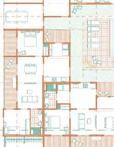 The concept of collective housing in the heart of the city challenges the neighborhood’s history of being a marketplace andnightlifehub,however,thissectionof theneighbord draws the attention of young professionals, artists, and tourists. Sitting on the corner of Mitchell and Forsyth Street while having a street front on Broad Street, this complex has three entrances intendedtodrawinthelocalneighborhoodinanefforttobring afree,communalspacetoSouthDowntown,speciÞcallyinthe form of a public pool and coworking space. The units above the communal tackle various strategies to make the complex cool, ventilated, yet naturally lit in the hot and humid Atlanta climate.Theinteriorbreezewayspromoteconnectivitybetween residents as well as the rooftop communal spaces that collect water to heat and cool the building. Overall, the equal-sized roomcommunityprioritizescommunalspaceinordertocreate a harmony between residents and local community members andpeople of variousbackgrounds andagegroups.