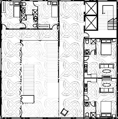 Interwovenfocusesontherelationshipbetweenornamentation andstructure.Giventheornamentofcelticknots,weanalyzed, deducedÞgures,andreconÞguredourowncelticknots.Wewere then able to create screens and variations of celtic knotworks that we soon integrated into the structure of our building.