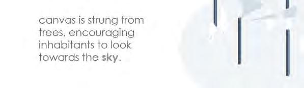 The visitors will enter adjacent to historic St. Mark’s Church, a neighborhood landmark. The alley includes ßoor murals and art installations which act as a threshold to transport visitors to the main central courtyards. On site, there are 5 shipping containers which serve as incubator kitchens for community vendorslooking to grow their businesses. Sloped green spaces encouragepeopletogather,create,andconnect.Ontheback of the site, stands a double height interior art galley adjacent to the vibrant open-air gallery. On the back side of the gallery lies the grafÞti tunnel, where anyone visiting the Medium can showcasetheirartonthewalls.Thistunnelleadstoasecondary arts courtyard which acts as an extension of the art galley and directsyouintothemainartscourtyard.Theshapesofthepaths and mounds are all drawn from grafÞti and street art while the shipping containersact as anchors for the landscape.