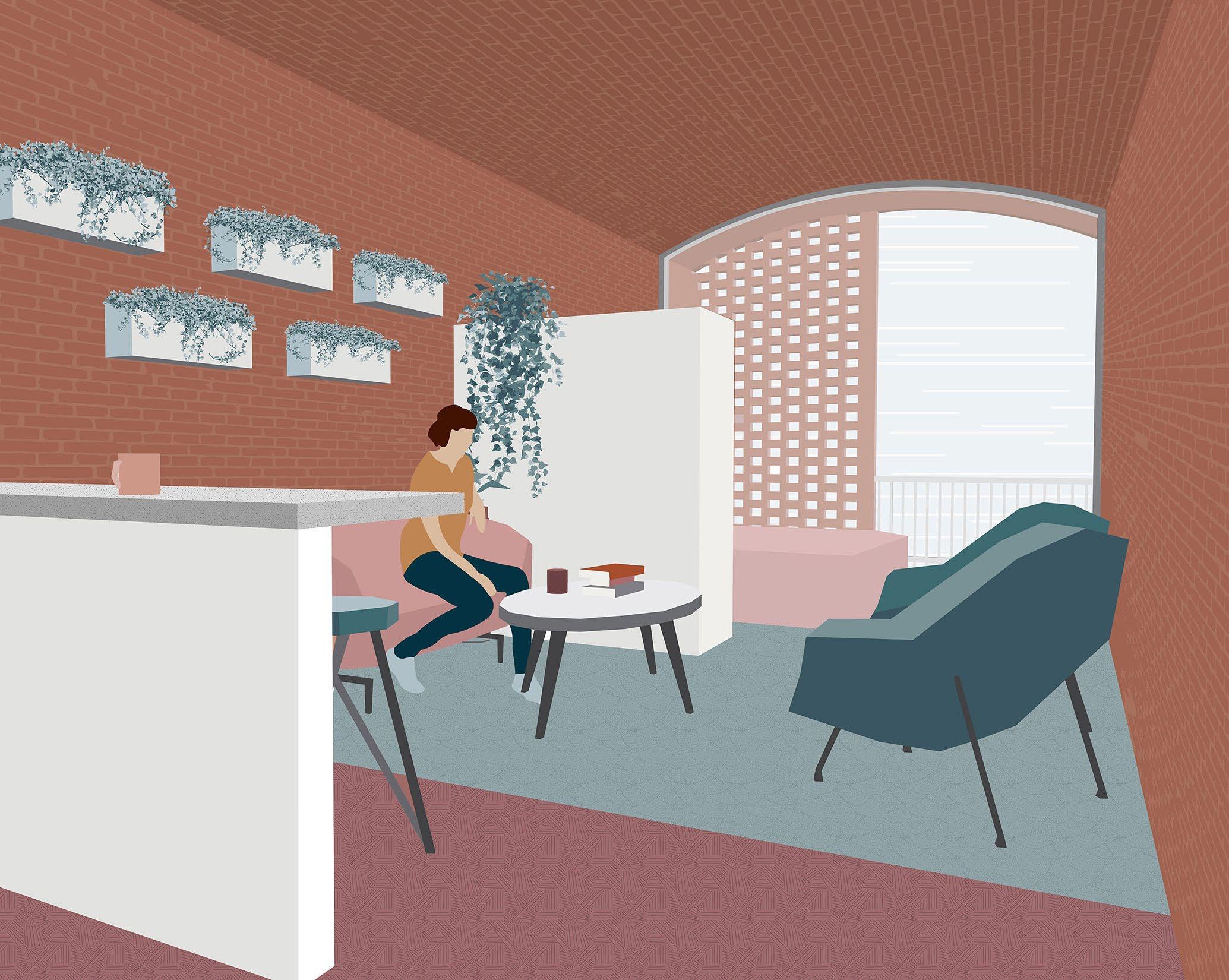 The project also considers more literal recovery such as the path to recovery from substance abuse issue through the inclusion of a methadone treatment clinic within the podium. The intention of all these recovery spaces within the project is to work towards normalizing the process of recovery and supporting it by being in proximity to community.