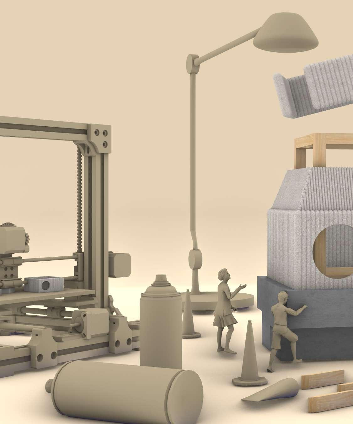ARhino-generated work desk assembly, showcasing the construction of the Mycelium-based modular system in progress