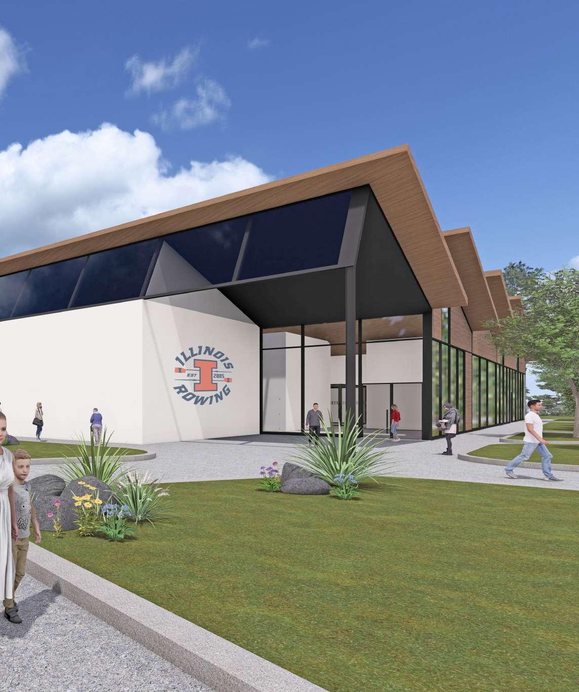 View of Illinois Rowing Center and Community Boathouse from the viewing Deck