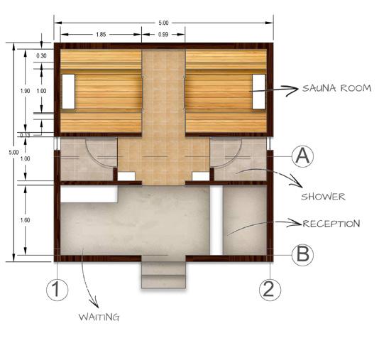 TO CREATE ANY FUNCTIONAL SPACE OF 3 GIVEN CHOICES (SAUNA, JUICE BAR, CHANGING STATIONS) IN BETWEEN TWO