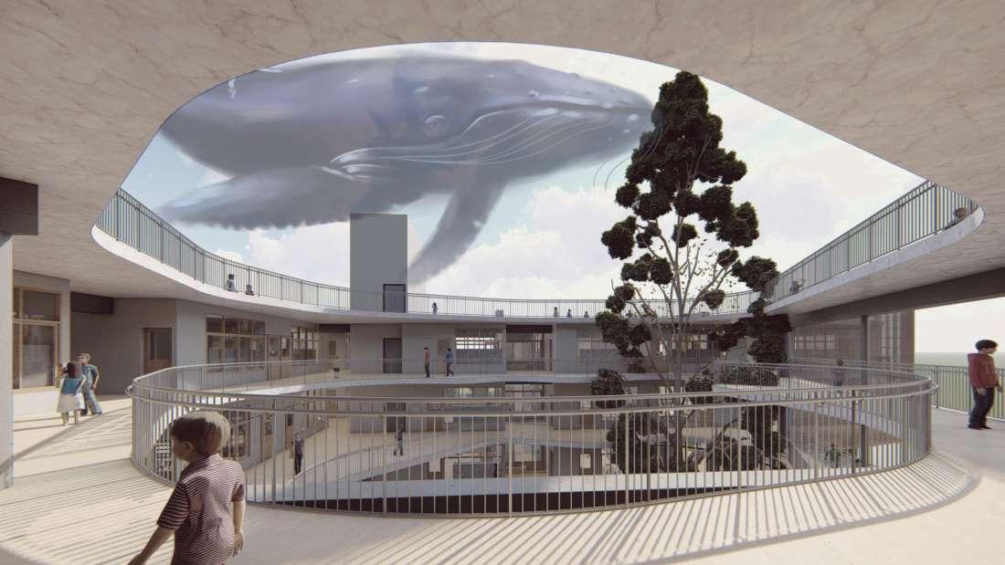 Based on human-centered education, we hope to break away from the regular classroom units in the past. With the theme of the sky runway, we create a 4-story ring corridor. The ring corridor surrounds the big tree in the atrium, and children can set up tents and camp under the tree of the atrium and experience the sense of accomplishment of actually making a small house on their own.