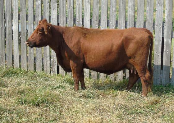 LOT 11 KORU 82E JAN 15 2017 1968433 RED PBC D0202 6M H0904 RED LONE ELM COMMANDER 8A RED RILEY’S VELVET 98N RED KORU CHATEAU 53U RED KORU THELMA 65A RED MOOSE CREEK THELMA 37P PBC 373 D0202 PBC 6F C0837 RED KINARED BOARDWALK 881K RED RILEY’S VELVET 10K RED GLACIER CHATEAU 744 RED LUCKY “C” BLAZE 69R RED BAR-E-L APPROVAL 4L RED MOOSE CREEK THELMA 101K BW: 80 ADJ. WW: 528 ADJ. YW: 753 BW: +1.0 WW: +30 YW: +48 MILK: +26 CE: -2.0 AI’d AI SIRE EXPOSURE DUE APRIL 16 RED SOO LINE GLADIATOR 5297 MAY 16 - AUG 21 TO RED MAPLE RIDE ACRE EYE SPY 20 PREG CHECK FAVOURABLE TO AI This family also started from one of the Belmoral heifers. 268U turned into a big bodied cow that produced offspring with great feet and udders. With a progeny of 14, she must have done something right. C O W F A M I L Y Barbara LOT 12A FEMALE LONE 14K FEB 18 2022 2259884 BW: 80 BW: +2.1 WW: +37 YW: +62 MILK: +16 CE: -4.0 RED LCF EYE SPY 16D SIRE: RED MAPLE RIDGE ACRE EYESPY 20 RED MAPLE RIDGE ACRE VELVET 6D RED LAZY MC EYE SPY 64Y RED TEDDY 5Z RED BLAIRS RELOAD 218Y RED MRAS VELVET 14U LOT 12 LONE 56F MAY 06 2018 2064095 RED PBC D0202 6M H0904 SIRE: RED LONE ELM COMMANDER 8A RED RILEY’S VELVET 98N PBC 373 D0202 PBC 6F C0837 RED KINARED BOARDWALK 881K RED RILEY’S VELVET 10K RED BELMORAL’S EAGLE 206’04 DAM: RED BELMORAL’S BARBARA 268’08 RED BELMORAL’S BARBARA 239’05 RED TKP BODACIOUS 693 RED RILEY’S VELVET 39H RED BELMORAL CATCHER 3’00 RED W H BARBARA 19B BW: 68 ADJ. WW: 599 BW: +2.4 WW: +35 YW: +56 MILK: +12 CE: -2.0 EXPOSURE DUE MAY 16 - AUG 21 TO RED MAPLE RIDE ACRE EYE SPY 20 EARLY MARCH 10