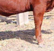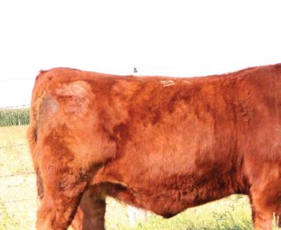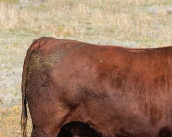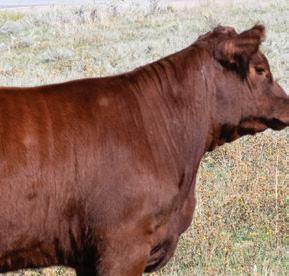 22M is a dark red MRLA Resource 137E daughter out of Cockburn Assassin daughter purchased from MRLA. We chose this mating again a er 22Ms full brother was our high selling bull in 2023 to Iron Sight Ranching. e calves he’s had o of him have been great and we look forward to the future of him and this bred heifer. It always hurts to sell the good ones and we were hoping to keep this girl around but will be happy to see her go to a good home.