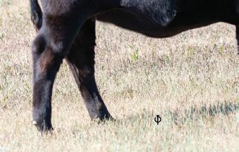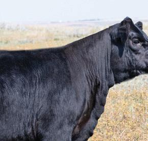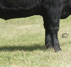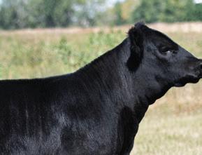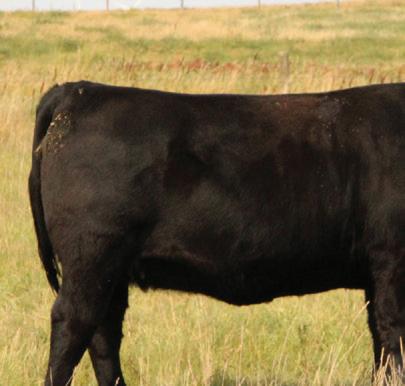 Elegant yet powerful, the terms best describing Lady 44M. A heifer that should go onto raise a lucky someone one heck of a herdbull! Lady is a product of Deuce 724K, purchased as the co-high selling black bull of the day, who has produced exactly what we had hoped from him. e sire has a great set of feet under him with added middle and my ideal skull shape to him. He ran with the heifers his rst season and still managed to put quite a few replacements back into the keeper pen. Lady’s dam is an easy doing Double F Firestorm daughter that did a heck of a job on her rst try with this one. Lady is halter broke and has a quiet disposition to her. Bred early to Ellingson’s Badlands. We have used a lot of Badlands, which every new calf crop we like them more and more. With milking daughters in herd now, I’m an even bigger fan!