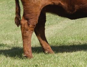 Red Gillett Barbie 405M carries natural muscling and capacity. Deep bodied yet feminine through her front, she has a maternal design that will make her a pro table cow. Structurally sound like her maternal lineage and built to last. She is looking to be making a beautiful udder. Barbie came o the pasture calm and docile, she would be easy to halter break. Sired by Red Gillett Ferdinand 45J, a son our of Red Kenray Rosa 139G. Rosa and Ferdinand were shown in Lloyd as a cow/calf pair.