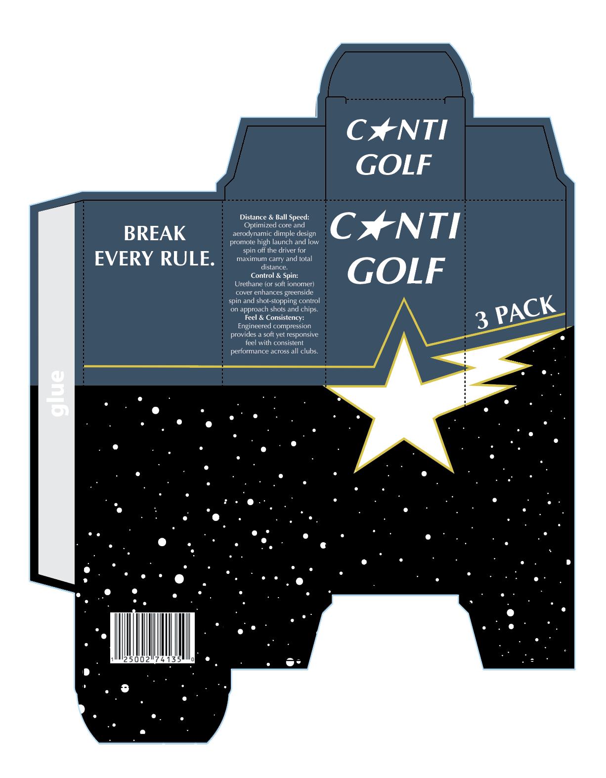 Conti Golf aims to design a new line of golf balls and packaging that challenges the traditional and conservative image of the golf industry. Instead of following the clean and classic style of existing brands, this project focuses on creating a bold, modern, and rebellious identity that stands out. The design must communicate performance and quality while also expressing energy, individuality, and confidence. Packaging should be visually striking, using strong graphics and contrast to grab attention. The goal is to attract a new generation of golfers and position Conti Golf as a unique, disruptive brand in a market that often feels outdated.