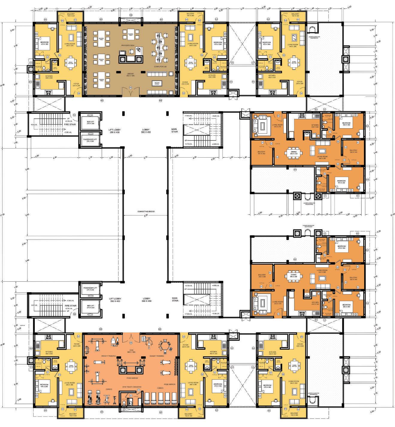 The brief of the project was to develop a mid-rise apartment building with 44 apartments of 1 BHK, 2 BHK & 3 BHK and respective premium typologies. A provision of amenities such as gym, children’s park and multi-purpose hall were required. The design should be able to improve the quality of life of the residents by incorporation of natural elements and activity areas. It should also have spaces that can facilitate community interaction and social well-being.