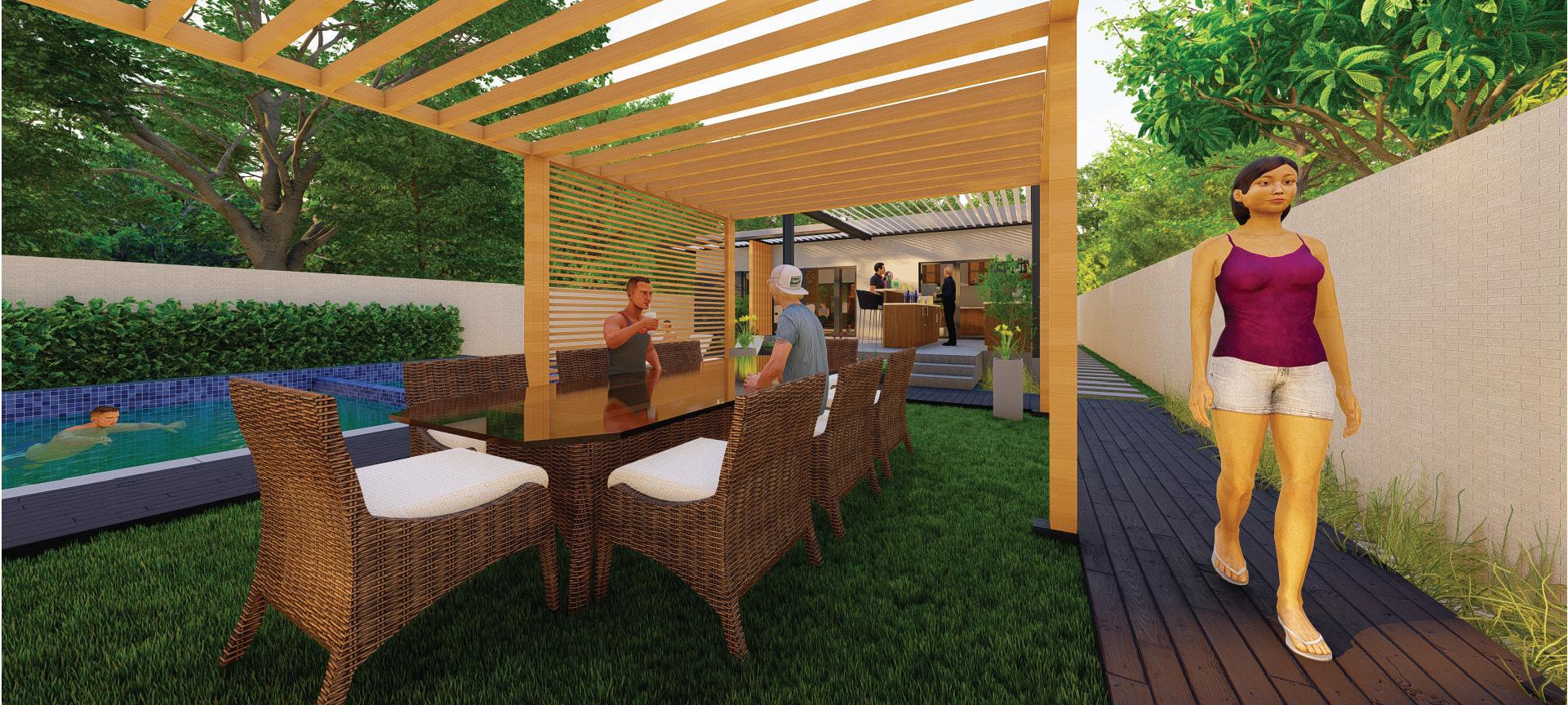 The brief of the project was to design a pool house for a family of 4, located in Puthenthope, Trivandrum. The requirements included living space, dining space, 1 changing room and attached bathroom. Outdoor elements such as gathering spaces, swimming pool and additional amenities shall be designed as per creators’ freedom.