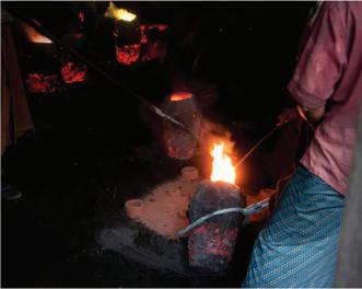 8) Once the metal is cooled, it is broken with hammer and then metal wires are seen.