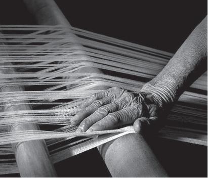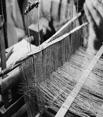 By the passing of the fly shuttle the weaving takes place and each weaver weaves.