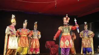 There is no stage or curtain or other such arrangement of work. The devotees would be standing or some of them sitting on a sacred tree in front of the temple. In short, it is an open theater.