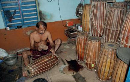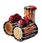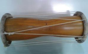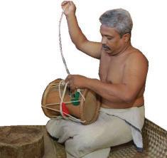 The cylindrical wooden part of the instrument is made of jackfruit tree wood. The one carved out of trunk and the skin of cow and buffalo are jointly fastened at the ends. The cylindrical wooden part of the instrument is made of jackfruit tree wood. The one carved out of trunk and the skin of cow and buffalo are jointly fastened at the ends.