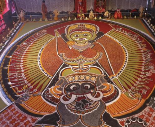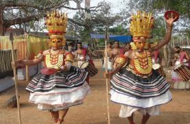 Mudiyettu Pullikali DufmuttuTheyyam, also known as Kaliyattam, It is a ritual art form so ancient it predates Hinduism (500 BCE), though it has since adapted to include Hindu elements. It's believed to be thousands of years old, from a time when tribal animism was the most common form of worship