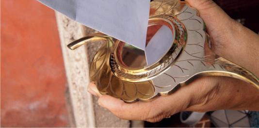 Aranmula Kannadi is one of the authentic and traditional handmade metal craft of Kerala. This craft has been popular and universally acclaimed. It has been marked under Geographical Identification (GI) in year 2004-05 in Aranmula. There are few characteristics to identify Aranmula Kannadi (mirror), the reflection obtained on the mirror is possessed on the upper surface, whereas in glass mirror the reflection is in bottom layer, thus there is no gap between the mirror and the object when it is touched on the surface. The making of this mirror embeds multiple process that requires lots of patience and persistence.