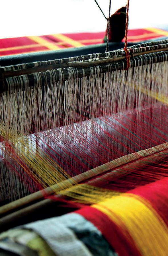 As per the pattern to be obtained the yarns are wound on to the warping frames by the warping paddle (of wooden bat shape) and fed to the loom.