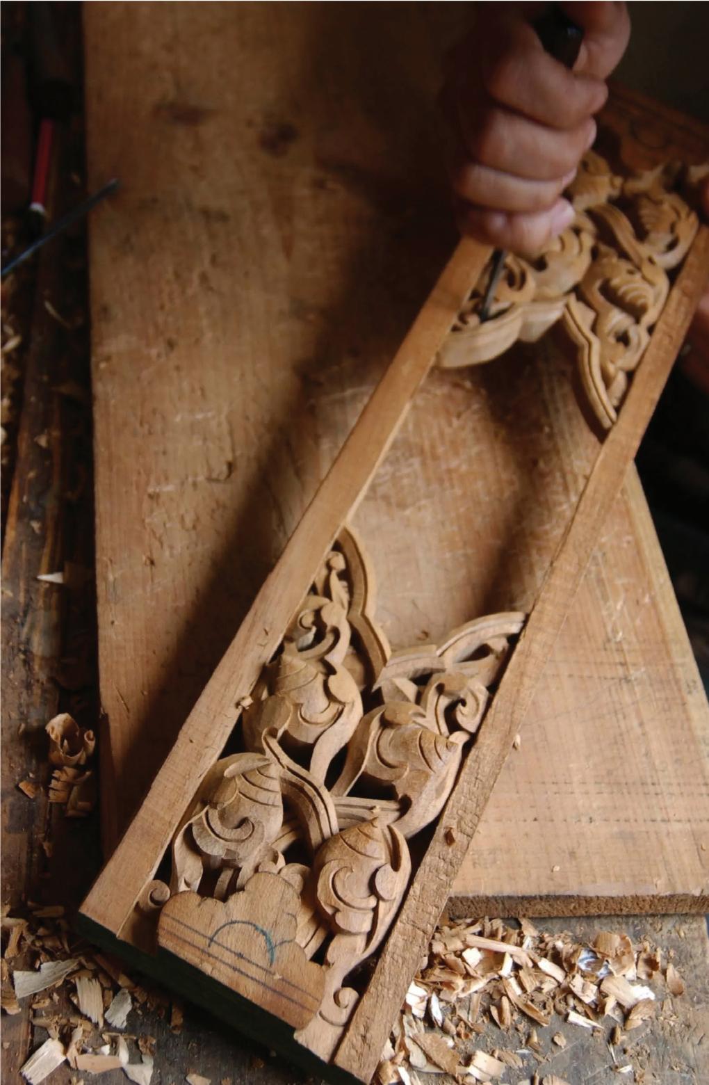 It is mainly done in temples and churches of the state which abound in wood carvings. Furnitures like chair, table,models of animals, deitys, kathakali accessories, models of comparisoned elephants,carvings of kathakali dance dolls,etc.