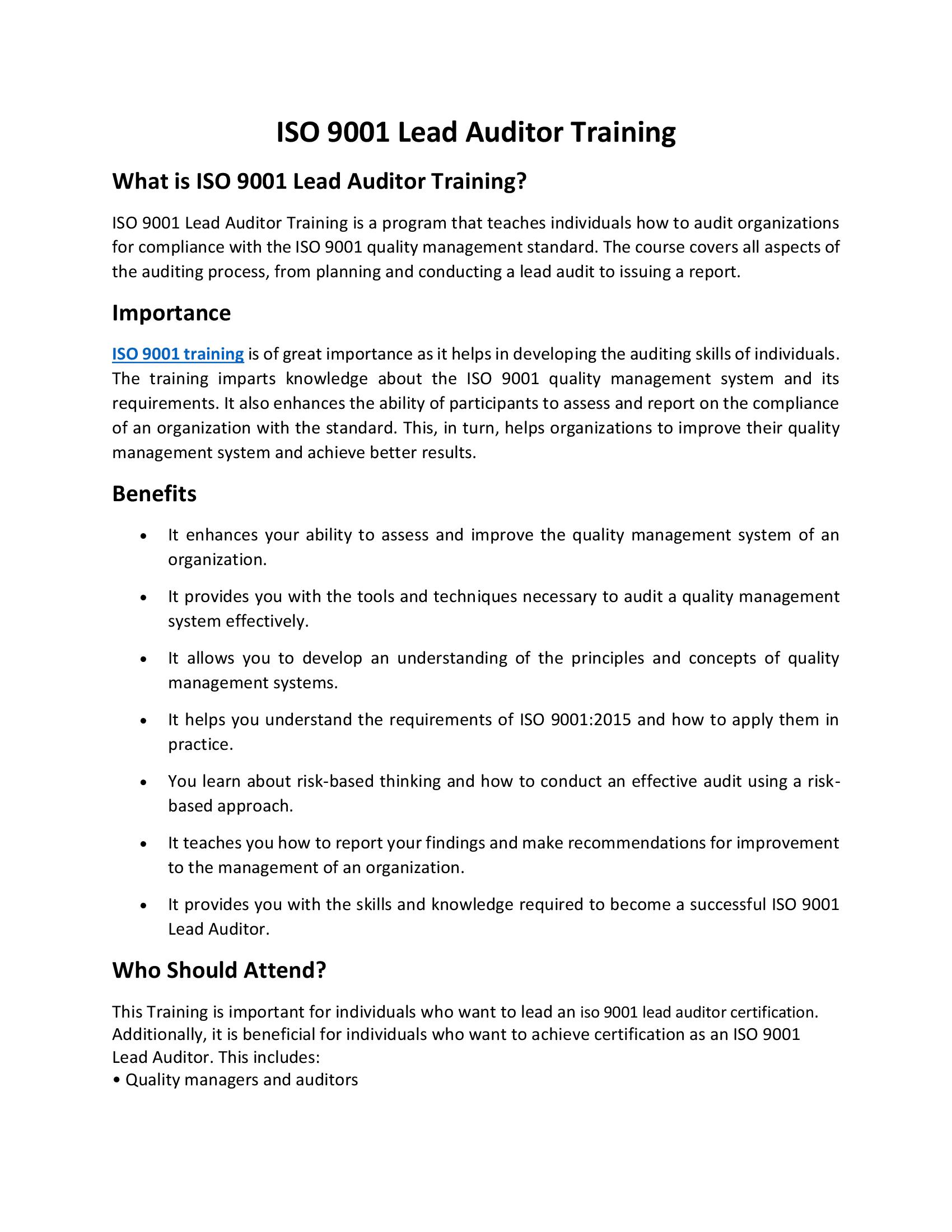 iso 9001 training