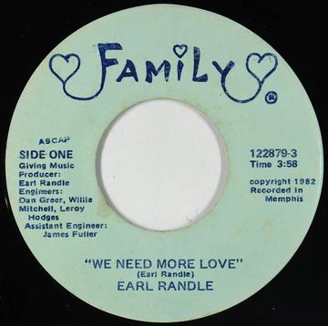 “This is a gospel record from the ‘80s done by my friend Earl Randle on his own label called Family. It’s a really cool and sweet soul-gospel track that definitely appeals more to soul lovers in the sense that it’s a gospel song, but it's funky and jazzy. A lot of private label gospel 45s have become collectible in recent years because of that type of sound. Some of the best music to come out of Memphis has been gospel, and I think that’s because it often has a real deep meaning and feel. Earl is still around…he was an early writer for Hi Records under Willie Mitchell, and he’s got a lot of great credits to his name.”