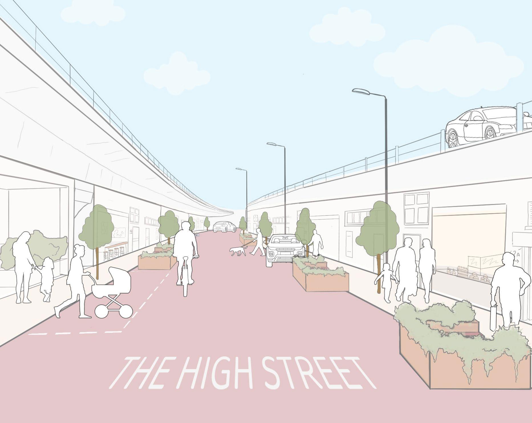 THE HIGH STREET CREATES A SPINE ALONG THE PARKSIDE WHARF, THE NEIGHBOURHOOD AND TRADE WHARF, PROMOTING A LINKAGE BETWEEN THE AREAS AND FACILITATING A CONNECTION TO THE WIDER AREA.