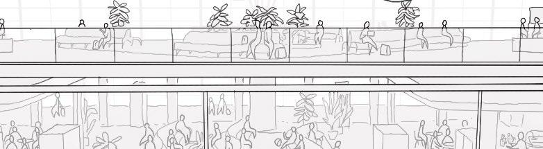 By being mindful of the acoustics, we can ensure a comfortable working space for the users. Concrete is quite literally a ‘running’ theme throughout, with large flowing furniture creating workspaces. Under the curves offers a quiet and private working space, apt for business meetings, whilst the top is more open, more suitable for a student. The wave like pattern flows through into a cafe/bar area where hot beverages and lunch is available to be enjoyed in the common area or outside in the botanical garden. The botanical garden functions with the use of a reinforced plastic tray to hold the growing materials/roots.